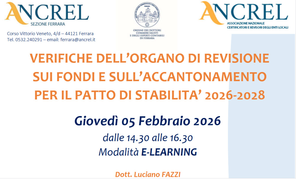 VERIFICHE DELL’ORGANO DI REVISIONE SUI FONDI E SULL’ACCANTONAMENTO PER IL PATTO DI STABILITA’ 2026-2028