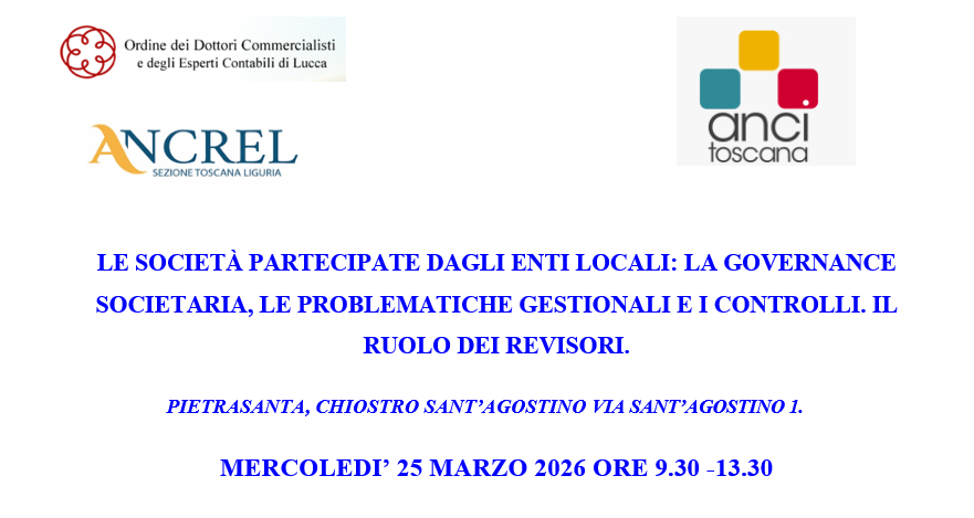 L’evento si svolgerà esclusivamente in presenza e la partecipazione è gratuita previa registrazione sul portale della formazione continua dei Dottori Commercialisti ed Esperti Contabili (FPCU) di Lucca.