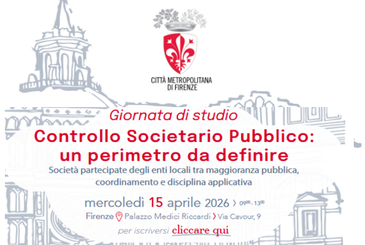 Si terrà mercoledì 15 aprile 2026, dalle ore 9:00 alle 13:00, a Firenze presso Palazzo Medici Riccardi, la giornata di studio dedicata al tema del controllo societario pubblico, con particolare riferimento alle società partecipate degli enti locali.