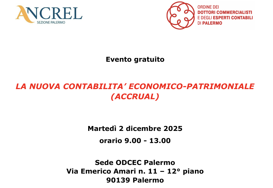 📍 ODCEC Palermo Via Emerico Amari n. 11 – 12° piano, 90139 Palermo