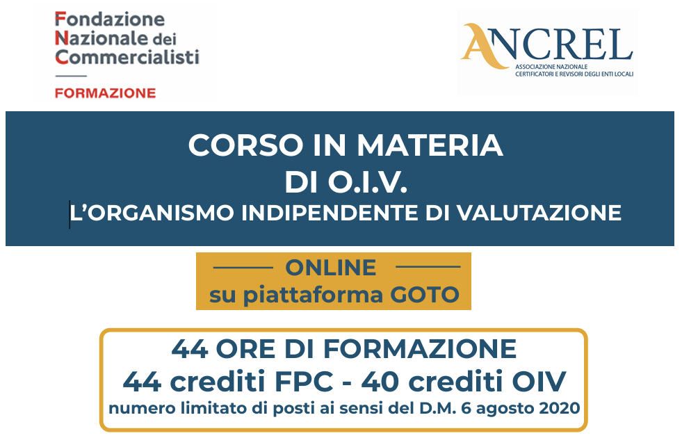 Il corso è valido anche ai fini della formazione obbligatoria degli iscritti all’Elenco Nazionale degli OIV e alla Fpc degli iscritti agli ODCEC