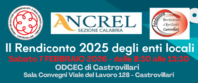 ANCREL Sezione Calabria, in collaborazione con l’ODCEC di Castrovillari e la Fondazione ODCEC di Castrovillari, propone il convegno “Il Rendiconto 2025 degli enti locali”, un momento di aggiornamento qualificato dedicato ai temi chiave della gestione finanziaria e dei controlli negli enti locali.
